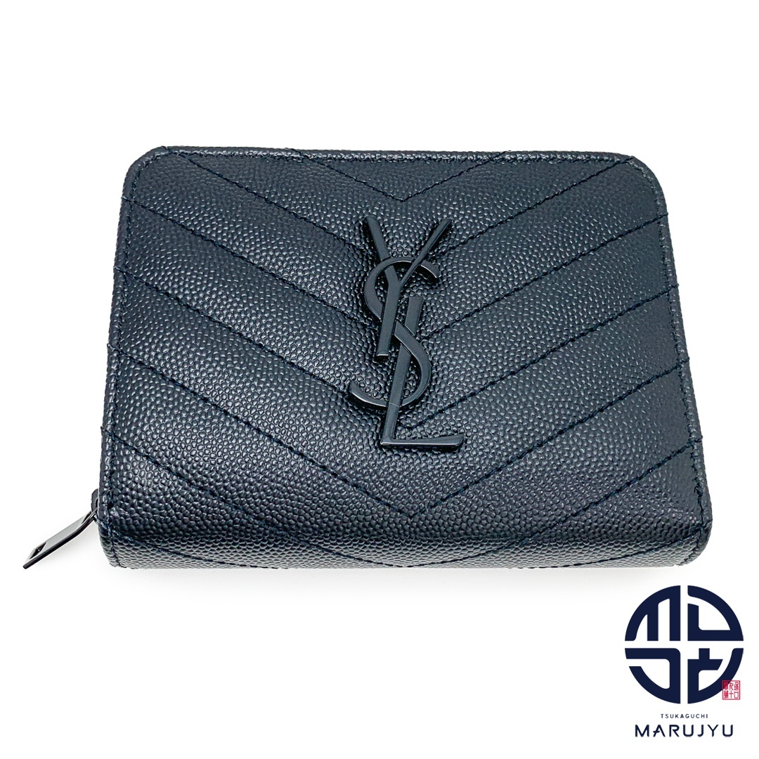 - SAINT LAURENT サンローラン ソーブラック 黒 モノグラム コンパクト ジップアラウンド ウォレット 二つ折りサイフ 財布