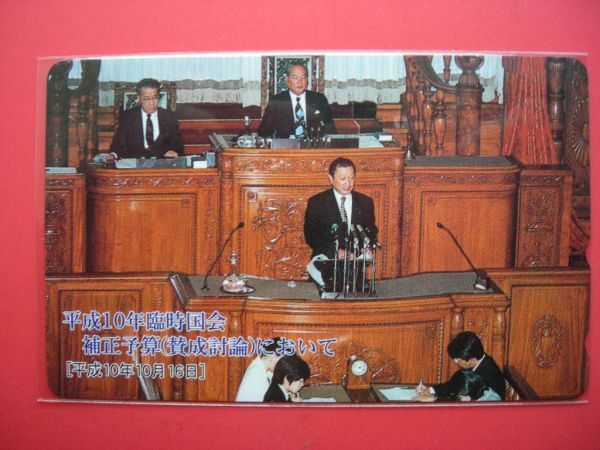 - 政治家 矢野哲朗 斎藤十朗 平成10年臨時国会 補正予算賛成討論 未使用テレカ