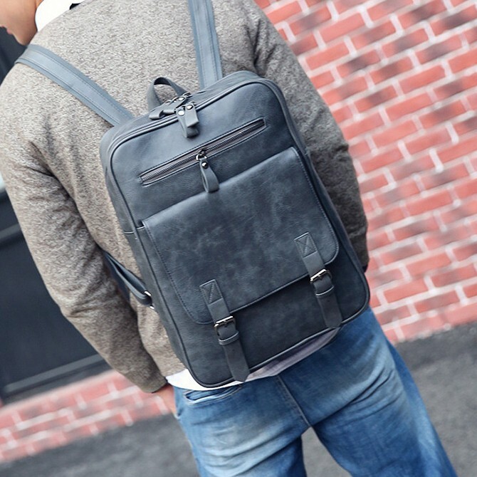 - メンズ&レディース スクエア型 リュック 通勤 通学 グレー