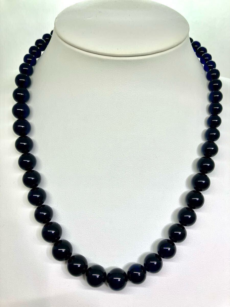 - 【新品】リトアニア産ブルーアンバー(琥珀)ネックレス*こはく*コハク*シンプル*ラウンド*真円*希少*一連ネックレス*琥珀