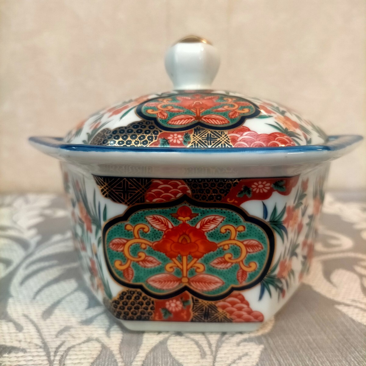 - 未使用長期保管品 有田 弥左衛門 錦松梅小物入れ 縁起の良い六角形 14㎝ 高さ14cm 大き目