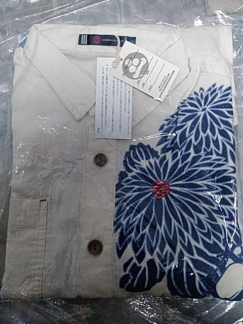 > 完売品 参丸一 サンマルイチ 菊爛漫 長袖シャツ XXL 新品未使用品 タグ付き カエル 刺繍 オフホワイト 和柄 メンズ コットン100%
