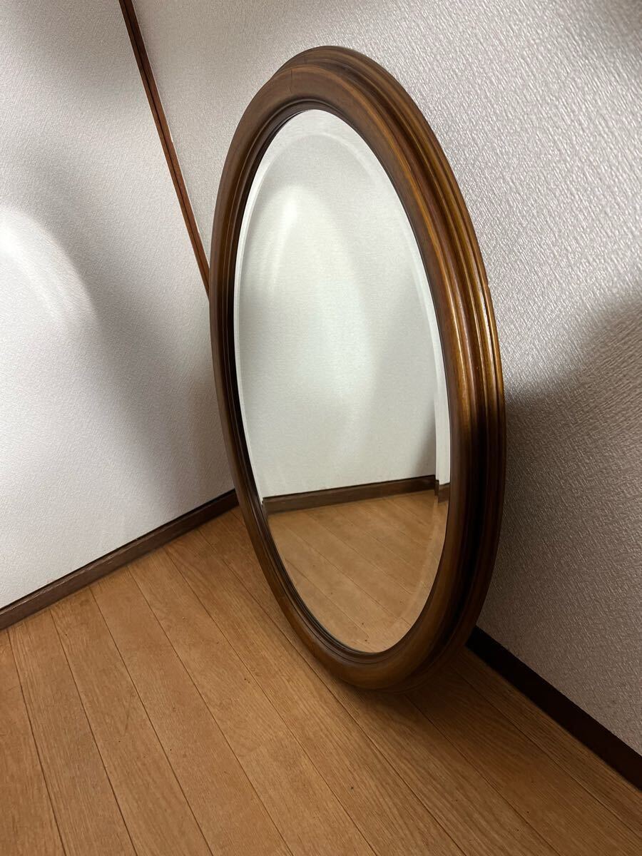 - ウォールミラー 79x59cm カーブミラー 鏡 壁掛け 壁掛け鏡 ミラー 木製 オーバル