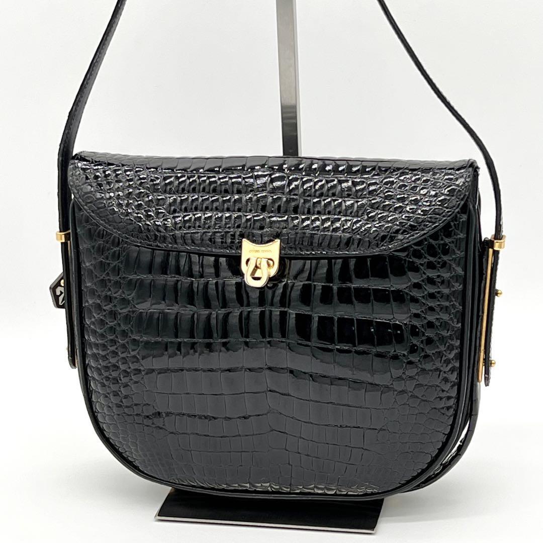 - 【美品】RETTILMODA クロコダイル 鰐 ポシェット ショルダーバッグ 斜めがけ クロスボディ 黒 フォーマル レディース 通勤 通学 DC251227A