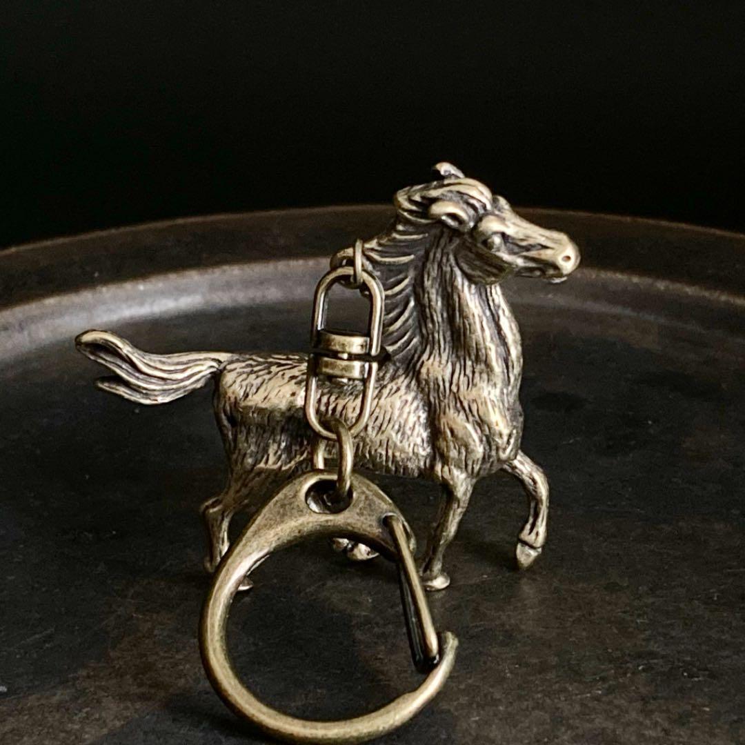 > 081 真鍮 キーホルダー ウマ 馬 干支 ビンテージ 風水 金運 開運 レトロ アンティーク 真鍮製 チャーム アクセサリー パーツ ハンドメイド