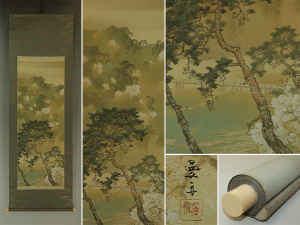 - 【模写】川村曼舟【嵐山春色】◆絹本◆共箱◆掛軸 s09035