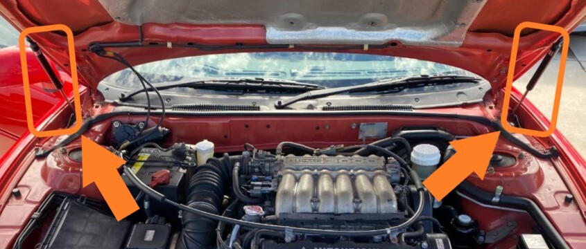 - 新品未使用 純正 三菱 GTO Z15A Z16A ボンネット ダンパー 左右セット フロント フードサポート ステー ショック B0439-1
