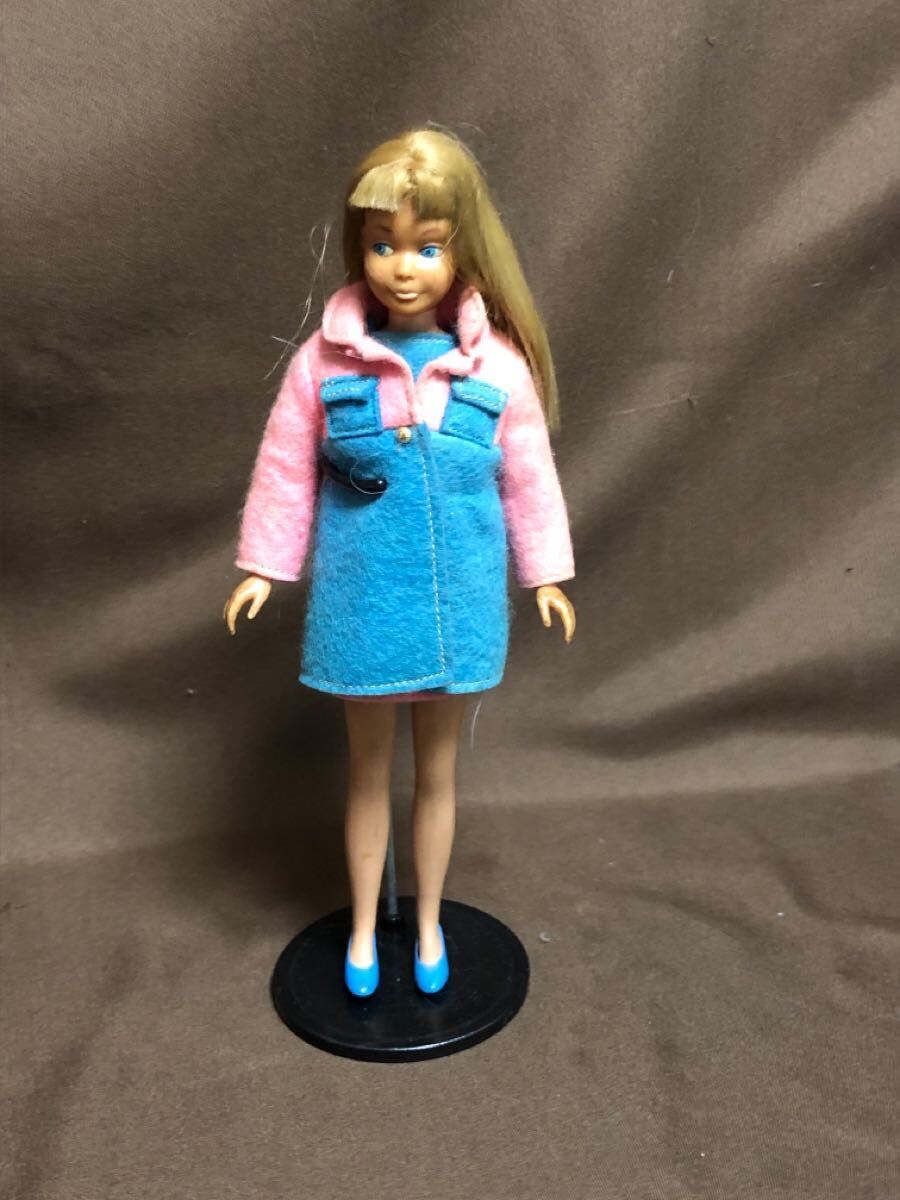 - スキッパーSKIPPER人形DOLL&ピンクと青のコート&靴&スタンド マテル ビンテージ