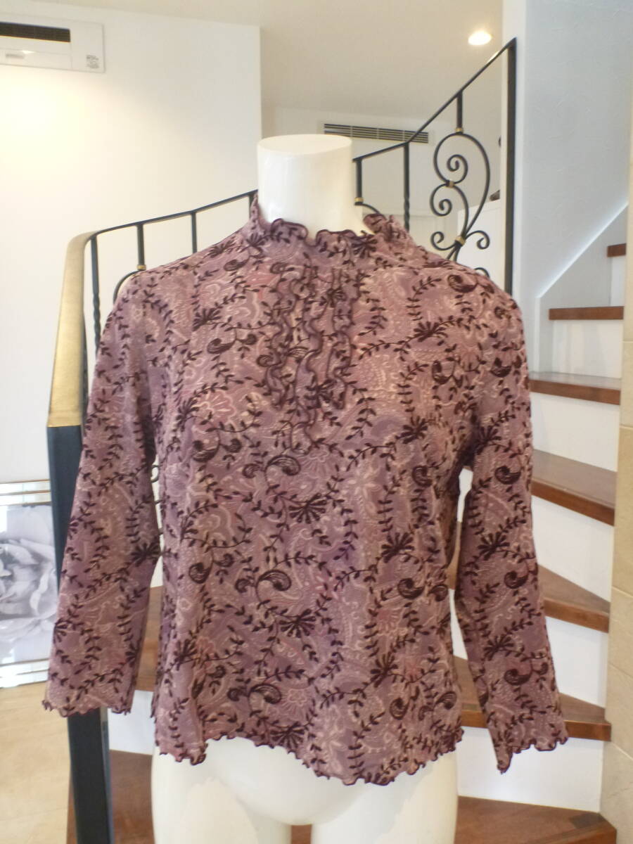 - 超美品 VINVERT(バンベール)★パープル系 刺繍 フリル トップス 11 L相当