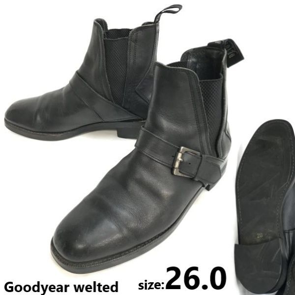 > MEN'S DEVOTION★グッドイヤー製法/本革/サイドゴアブーツ【JAPAN 26.0/黒/black】ショート/ベルト/leather/Boots/Shoes◆sWB88-44