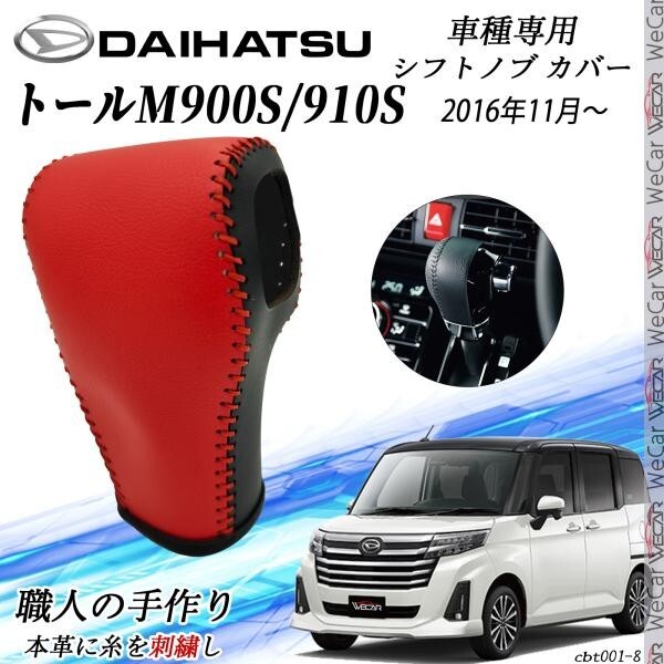 - トール シフトノブ ダイハツ DIY 本革材質 内装カスタム パーツ アクセサリー爪キズ防止 車種設計 M900S/910S 2016年11月~ cbt1番赤色