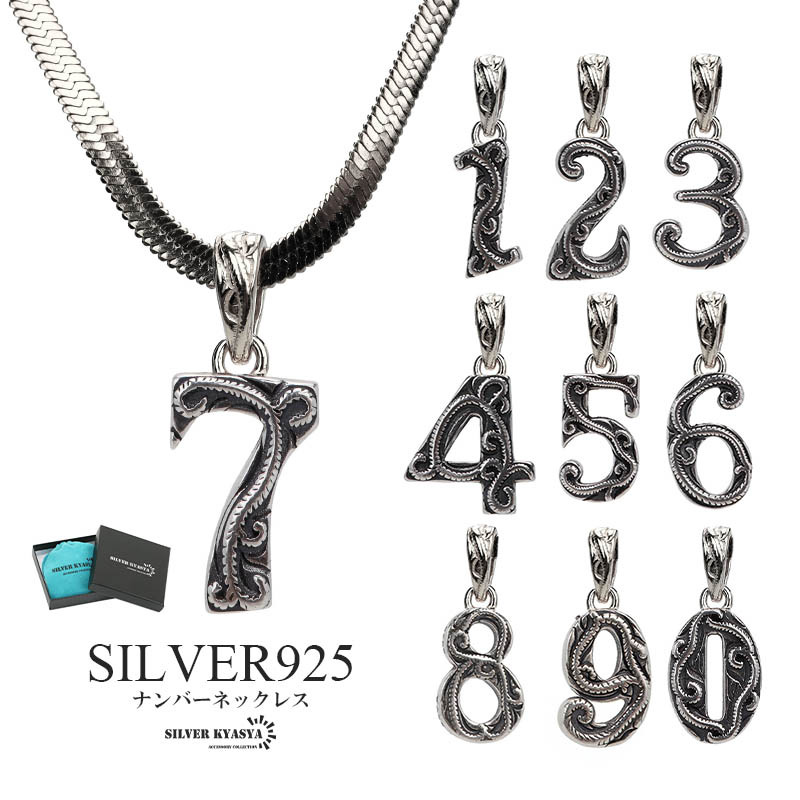 > (ナンバー:9、45cm) ナンバーネックレス ハワイアンネックレス アンティークシルバー 数字ネックレス スネークチェーン 専用BOX付属