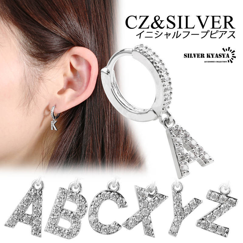 - (G) イニシャル CZ パヴェ フープ ピアス アルファベット 英語 文字 頭文字 ドロップピアス 片耳 1点