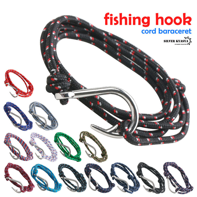- (J-ブラック&スカイブルー) コードブレスレット 紐 釣り針 カラフル ビビット シルバー フリーサイズ