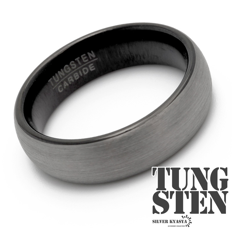 > (31号) タングステン 甲丸リング シンプル メタリック つや消し 指輪 グレー ブラック 男性 専用BOX付属