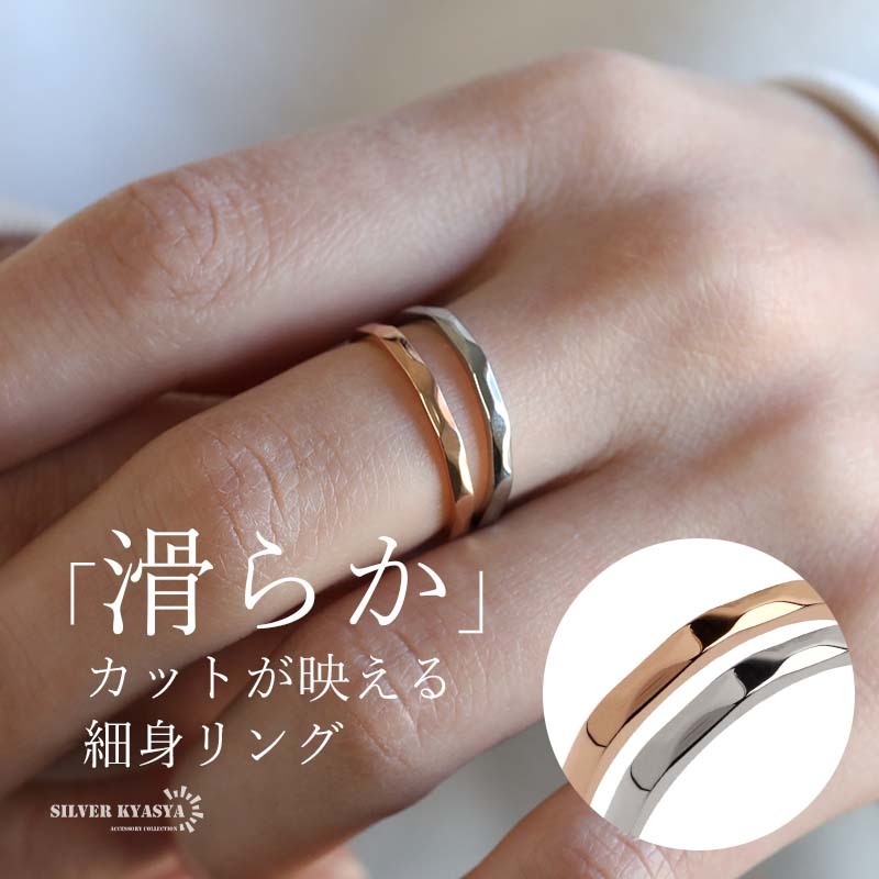 - (シルバー、16号) ダイヤカットリング 極細 リング 菱形リング シルバー ピンク レディース 金属アレルギー対応