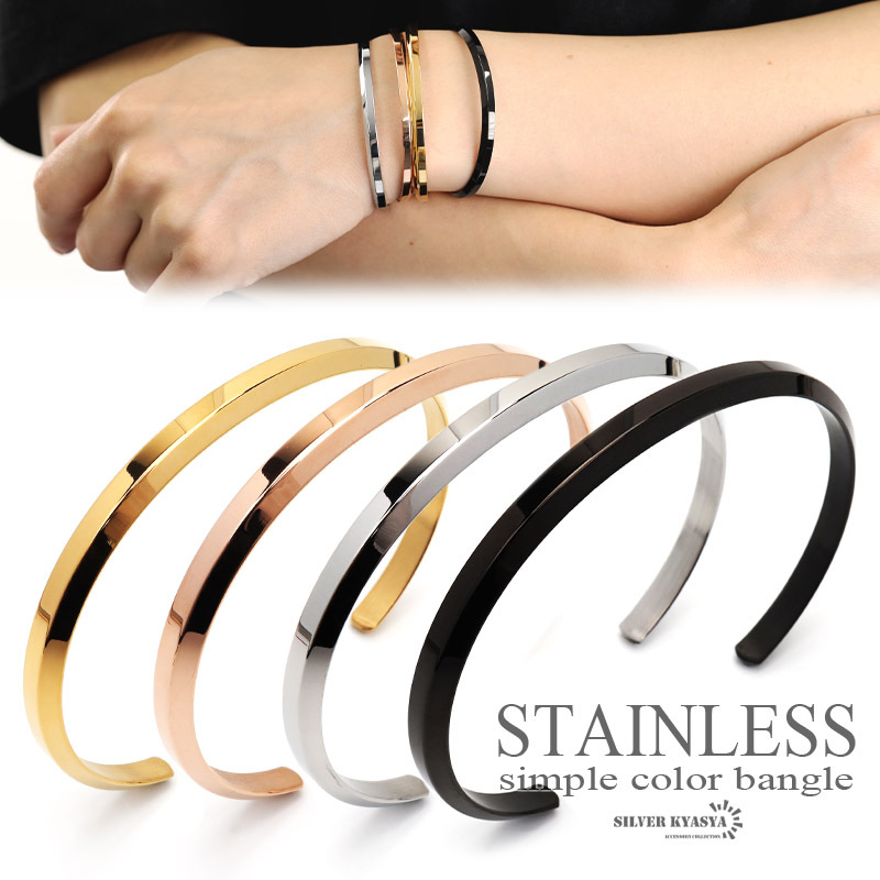 > (シルバー) レディースバングル ステンレス シンプル 日常使い 普段使い 細め ゴールド シルバー ブラック ブレスレット