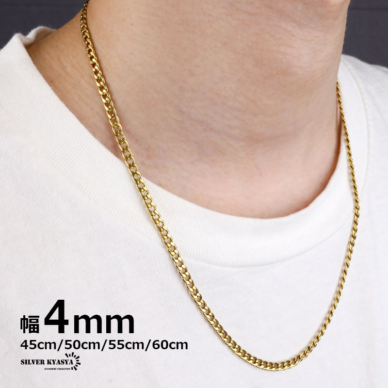 > (50cm) チェーンネックレス 喜平チェーン 幅4mm ステンレス 18k gold ゴールド 金色 ネックレス カニカン 喜平