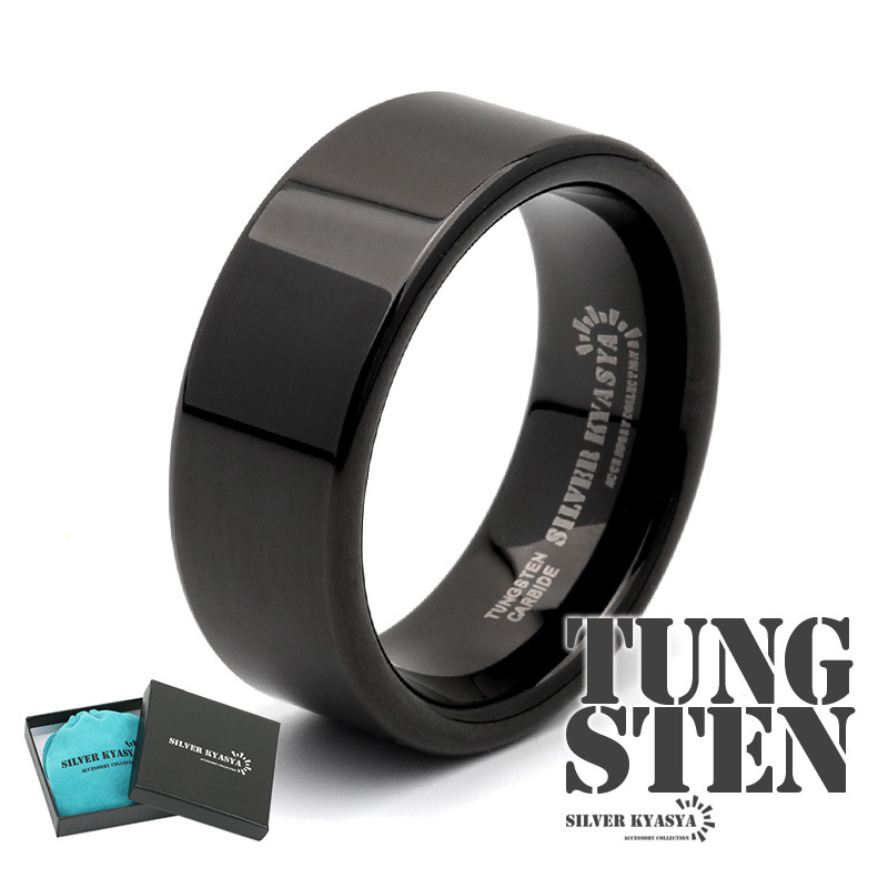 - (22号) タングステン 平打リング 指輪 メンズ リング メタリック シンプル 金属アレルギー対応 専用BOX付属