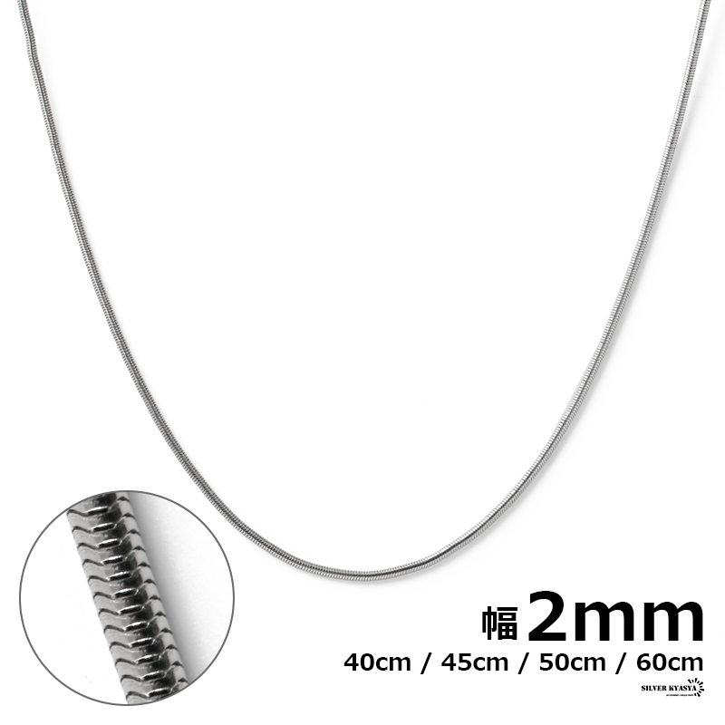 - (45cm) チェーンネックレス スネークチェーン 幅2mm ステンレス シルバー 銀色 カニカン スネーク 蛇 細身 極細