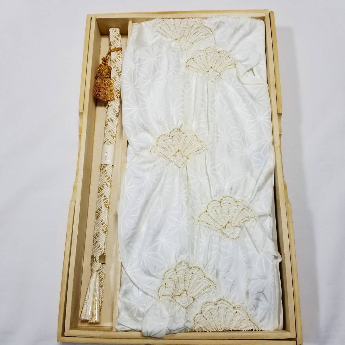 - 【桐徳】礼装用☆帯締め.帯揚げセット*未使用.美品{正絹*手絞り扇面.白*帯揚げ-手組み.金糸文様.亀房付き*帯締め*セット}№6978