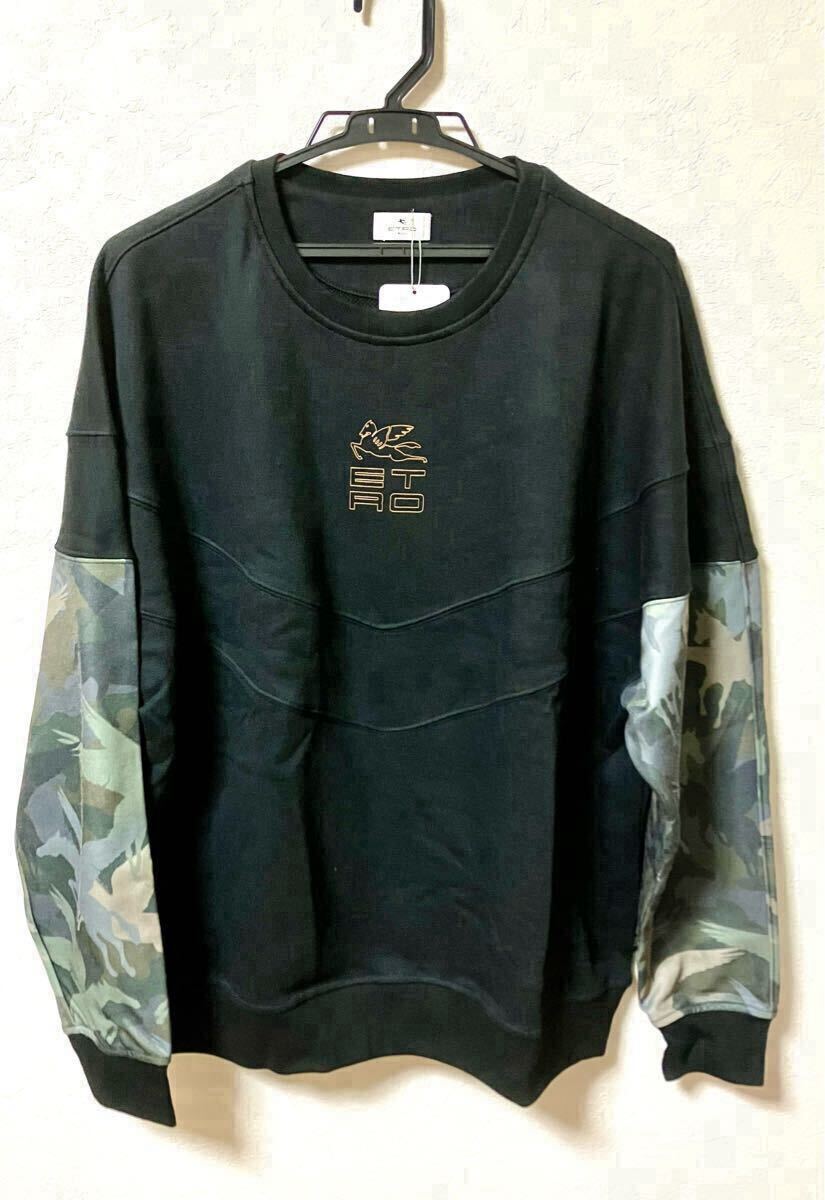 - 【新品タグ付】ETRO エトロ長袖トレーナー(Sサイズ)/ロゴデザイン/スウェット/オーバーサイズ/イタリア製/黒×カモフラ/PEGASO ペガソ