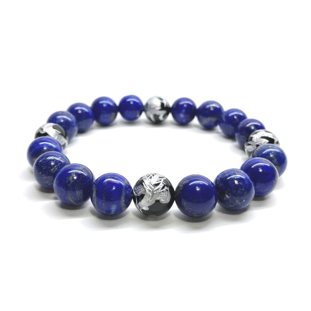 - 10mm 四神獣銀彫オニキス×ラピスラズリ パワーストーン ブレスレット天然石 運気上昇 開運 幸運 金運 恋愛運 お守り 青龍 白虎 玄武 朱雀
