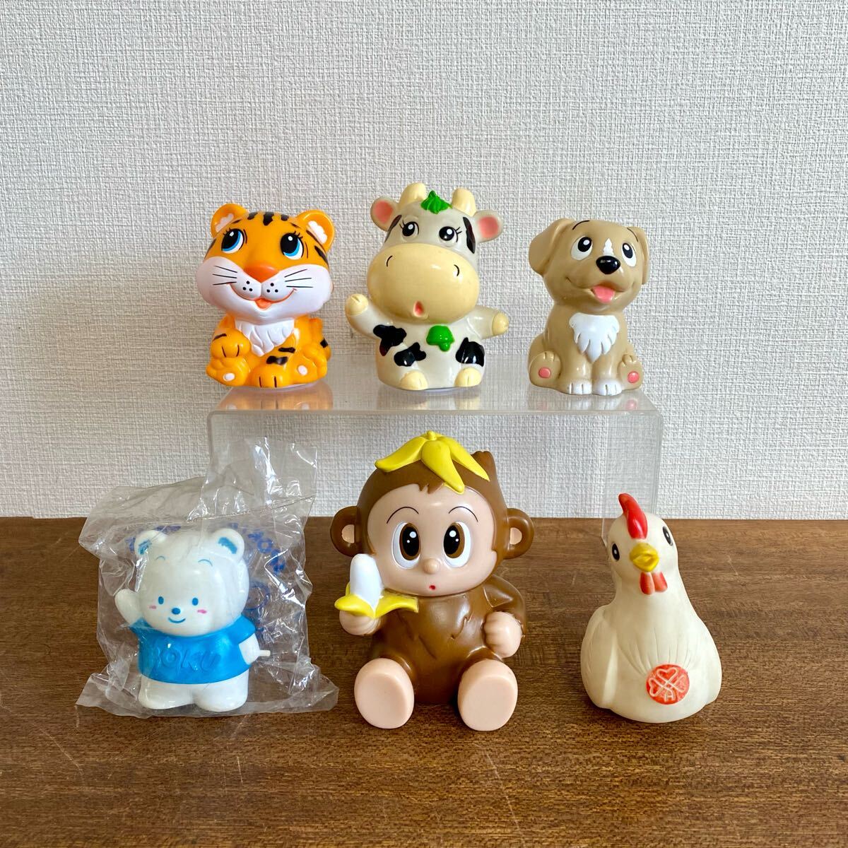 - レトロ 貯金箱 ソフビ 6点セット / JA 山梨中央銀行 信越 農協 コインバンク 袋入り有