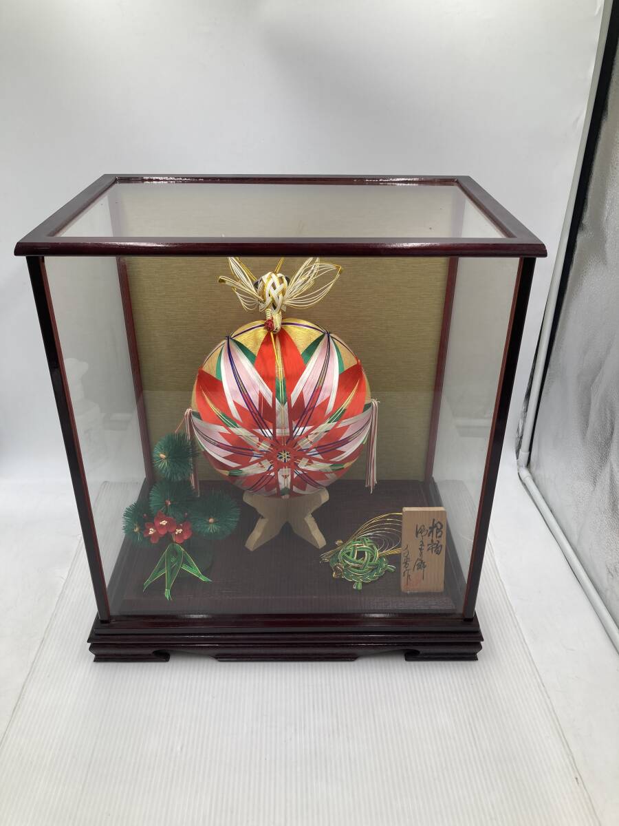 - 【美品】御まり飾 ガラスケース入り 千寿作 絹まり 元箱有 工芸品 鞠 招福 1点