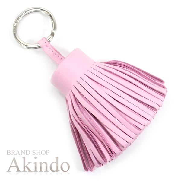 > 【新品】エルメス キーホルダー バッグ チャーム カルメン ピンク ラムスキン タッセル キーリング キーホルダー シルバー金具 HERMES