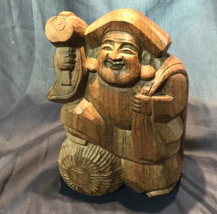 - 【仏像・仏具】大黒天 大黒さま 木製 一刀彫 立像 七福神 おめでたもの 財運の神様 ディスプレイ用品 インテリア用品 骨董品 アンティーク