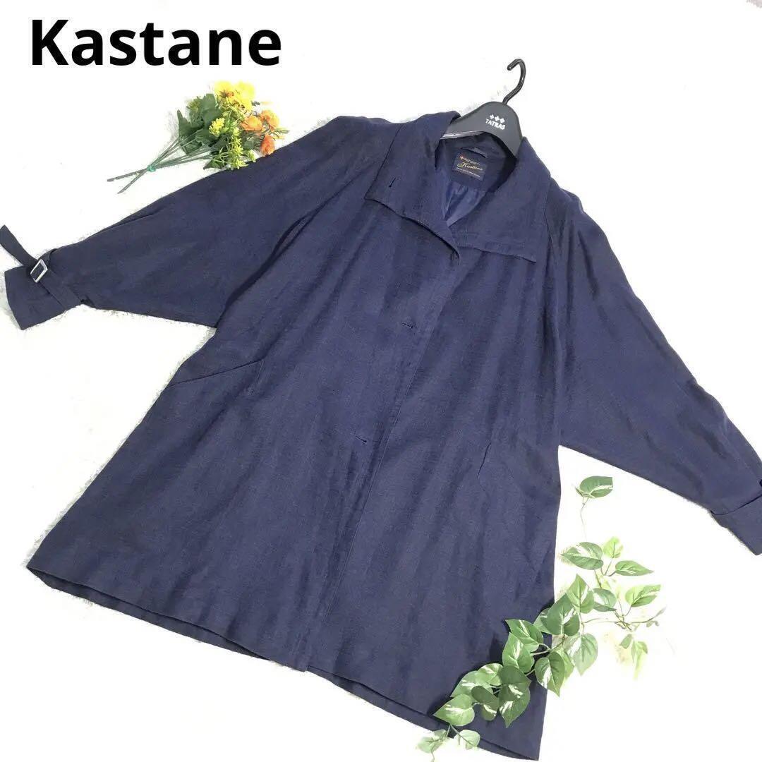 - KASTANE ネイビー レディース リネン混 ロングコート ハーフジャケット