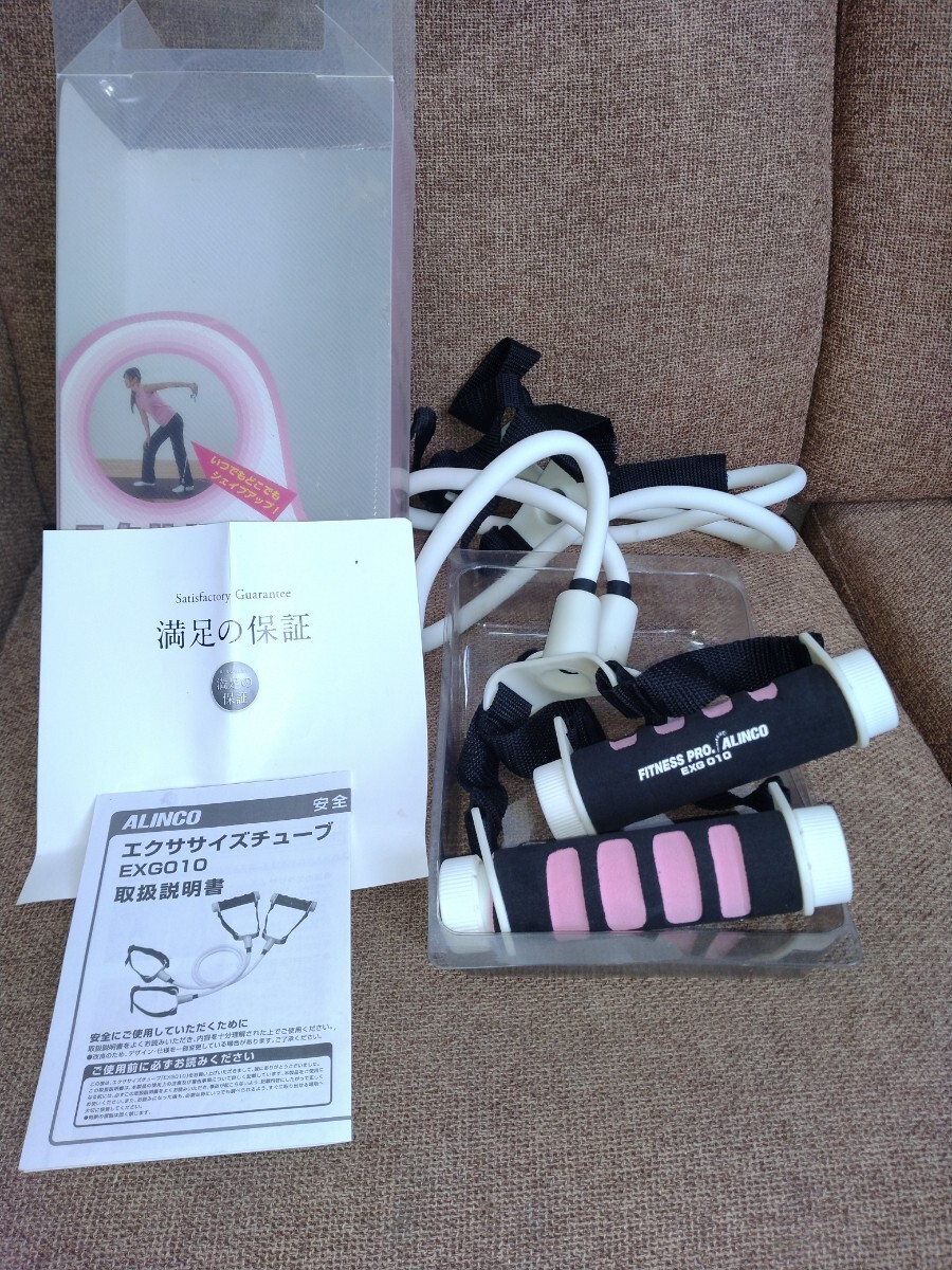 > K846 アルインコ(ALINCO) エクササイズチューブ EXG010 ウエイト付 (上半身 下半身 トレーニング用) 中古良品