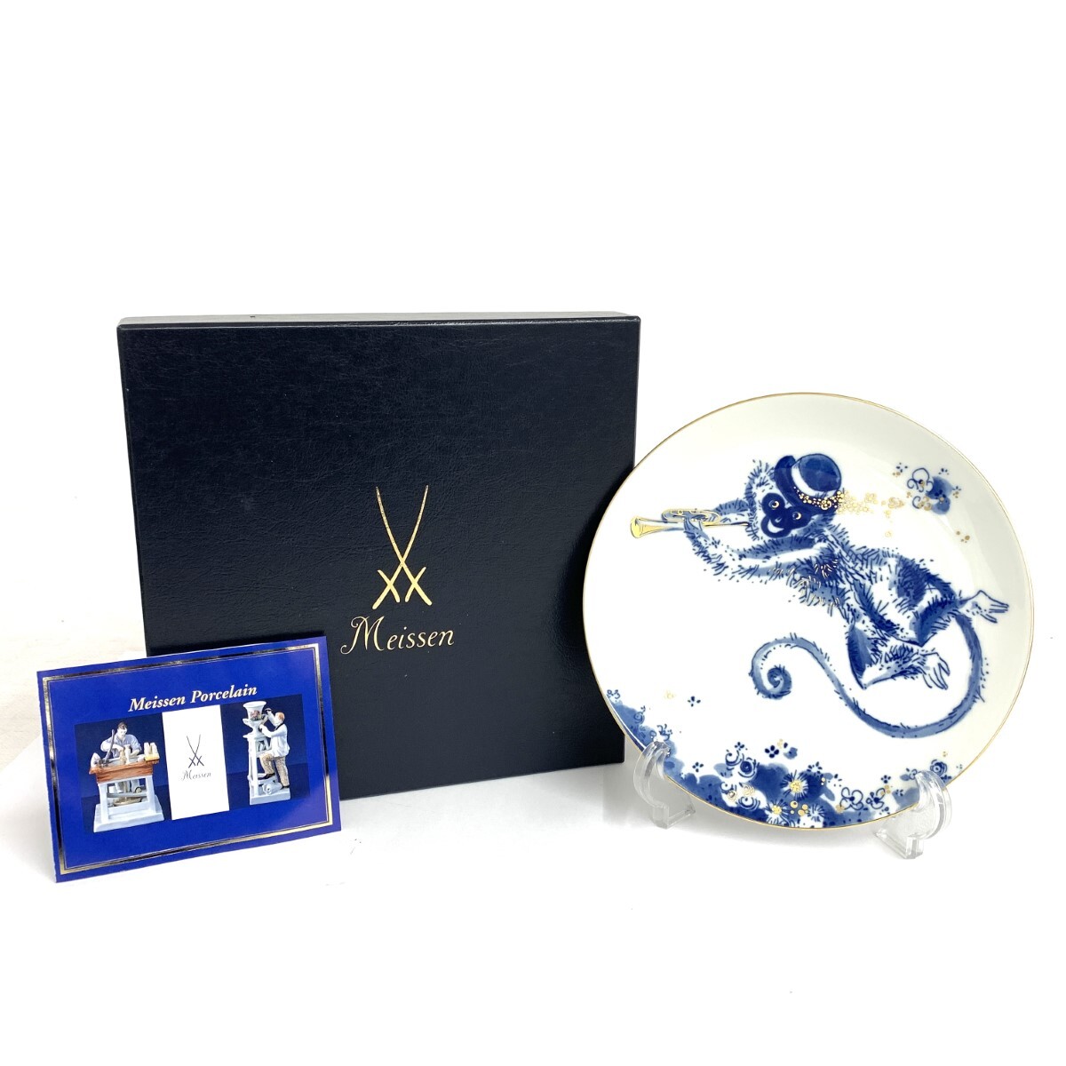 > ◆Meissen マイセン 2004年 ~トランペットを吹く陽気なさる~ 干支プレート◆ ホワイト 洋食器