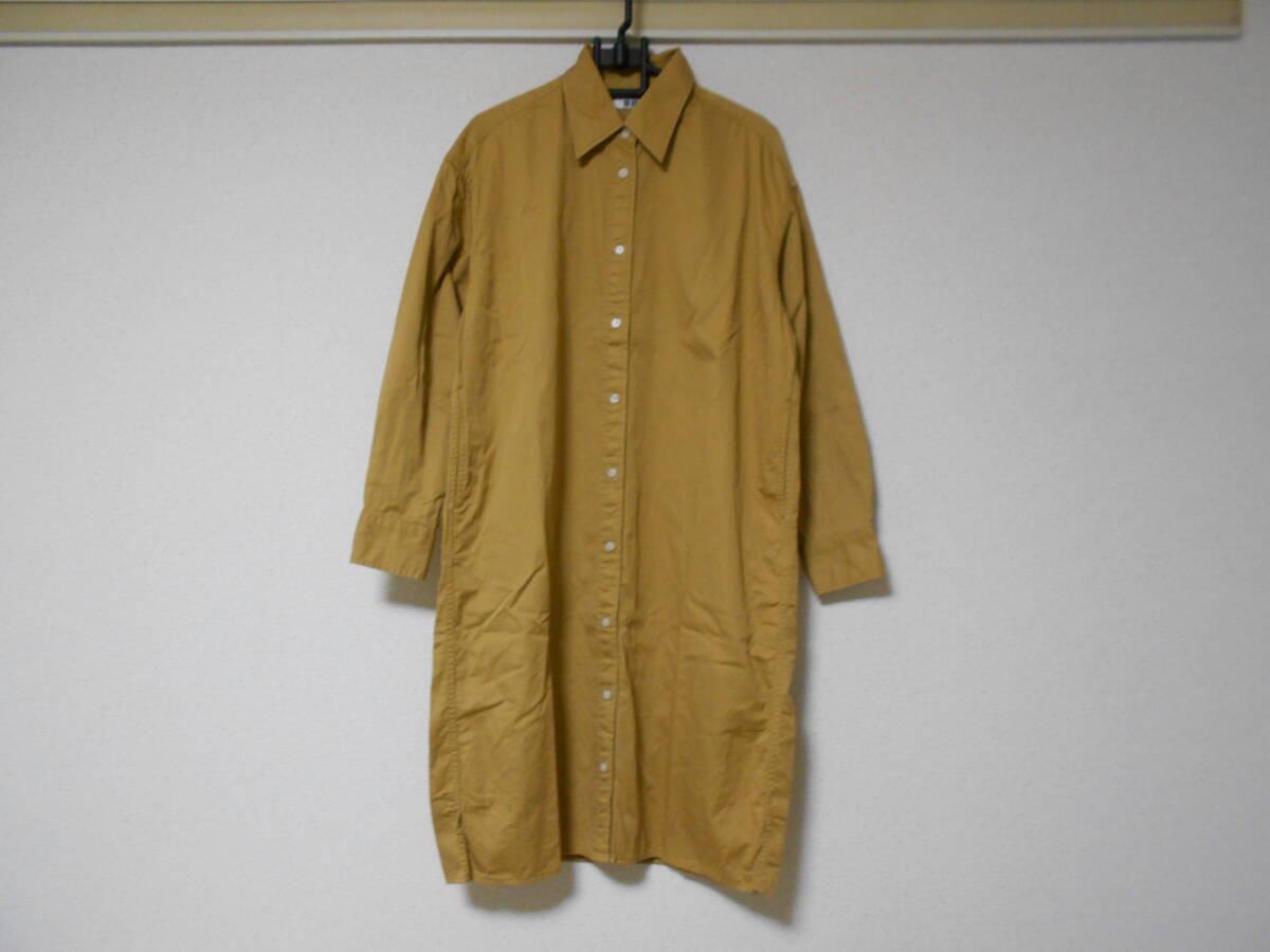 > UNIQLOユニクロ☆濃いめカーキベージュ☆おうど色の長袖シャツチュニック☆ゆったり♪ワンピース☆左右ポケット付き☆大きめMサイズ☆美品