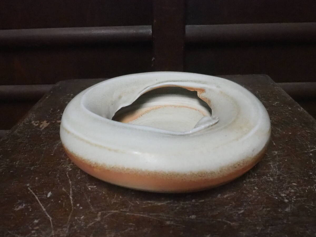 - 【焼き締め白備前浮き輪花入れ】天麩羅和食器自然釉寿司屋料亭割烹懐石旅館民宿御造り刺身信楽常滑穴窯薪窯陶芸焼き物長角皿花器茶道華道