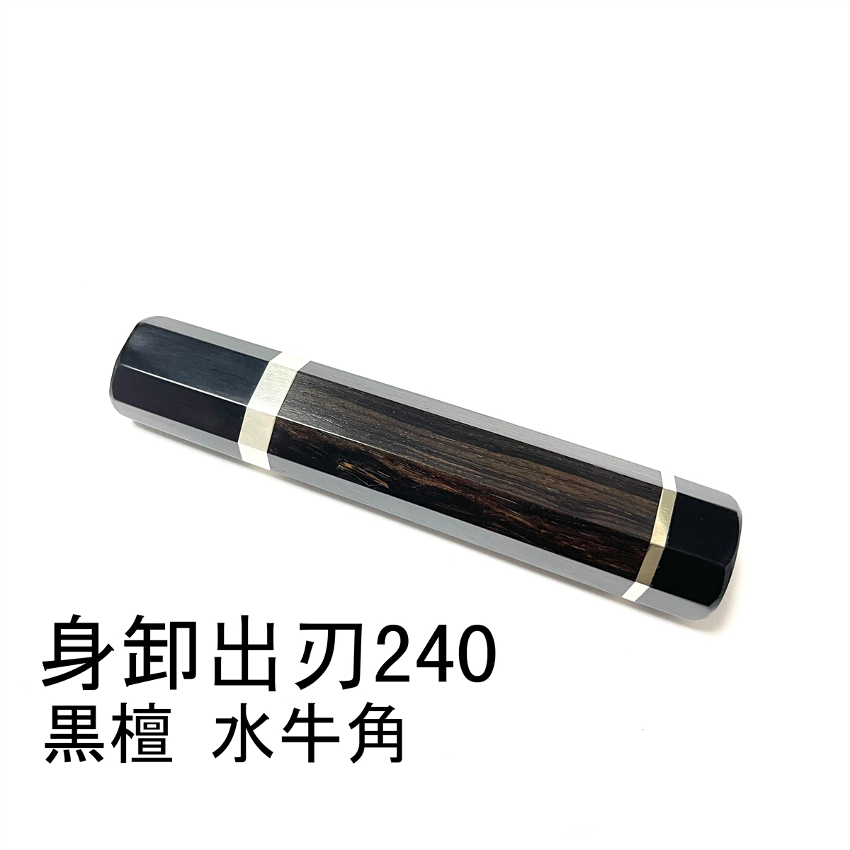 > 黒檀 黒水牛角 ★ 両段銀巻 身卸出刃240 身卸出刃8寸 身卸出刃210 身卸出刃7寸 和包丁 出刃 骨切 鱧切 手作り包丁柄 ★ 八角柄