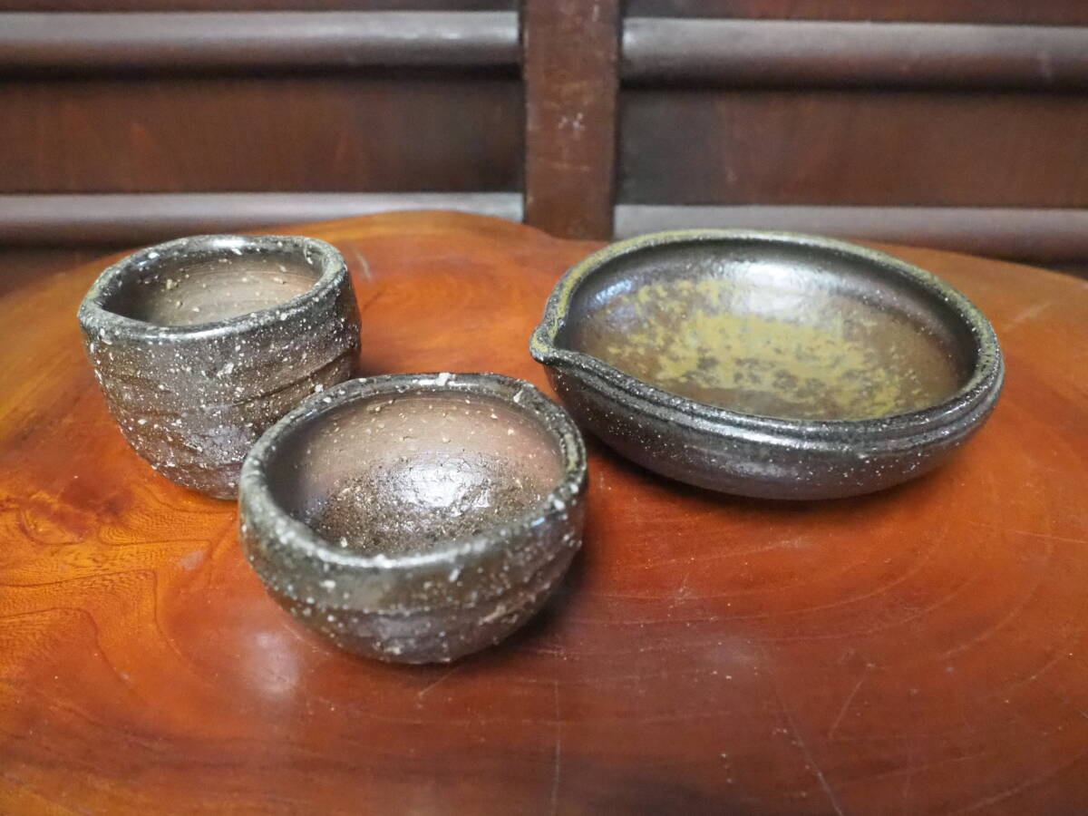- 【焼き締め自然釉ぐい呑み2客片口】徳利酒器穴窯和食器料亭割烹寿司屋懐石旅館民宿御造り備前信楽常滑薪窯陶芸刺身焼き物長角皿茶道華道