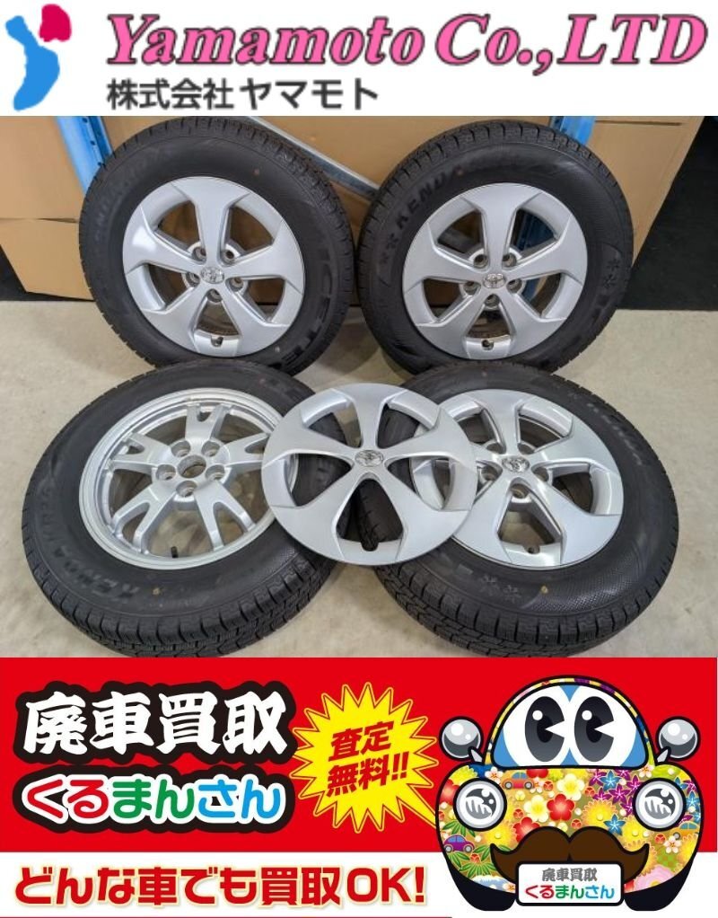 - [Z289]195/65R15 スタッドレス 2020年製 ZVW30 プリウス 純正 アルミホイール 6J ET45 5H PCD100 キャップ4枚あり 個人宅不可