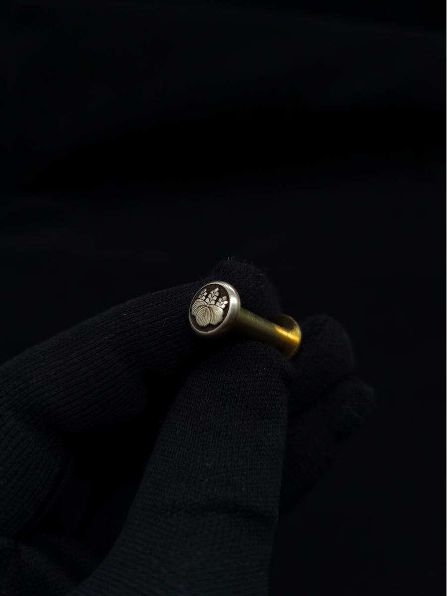 - s-030 ネジ目釘 五七桐紋 日本刀 武具 刀装具 柄前金具 銅製 小道具 鍔 目貫 縁頭 拵