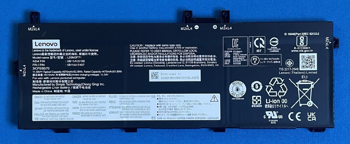 - 純正新品 Lenovo ThinkPad X13 Yoga Gen2 Gen3 等用 バッテリー L20M3P71