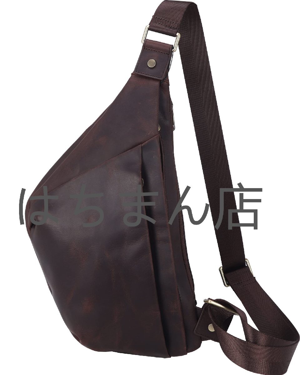 - 雅革 極薄 本革 ボディバッグ メンズ ワンショルダーバッグ 子牛革 斜めがけ スリングバッグ チェストバッグ 薄型 ダークブラウン