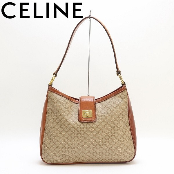 > ヴィンテージ◆CELINE セリーヌ PVC×レザー マカダム柄 肩掛け ワンショルダー バッグ ベージュ×ブラウン