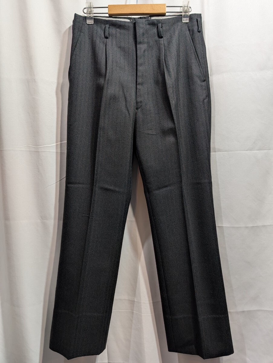 > 70s 80s Japan Vintage ウールスラックスパンツ M相当 メンズ パンツ ボトムス センタープリーツ グレー系 ストライプ ビンテージ 日本製