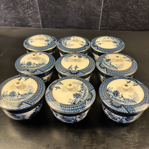 - HN3006 【希少】NIKKO ニッコー 蓋付き湯呑み 9客セット 山水柄 ブルーウィロー 和食器 9客セット