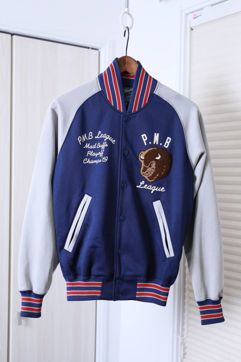 日本製Pherrow's フェローズ フロッキープリントワッペン加工 スタジャン風ラグランブルゾン