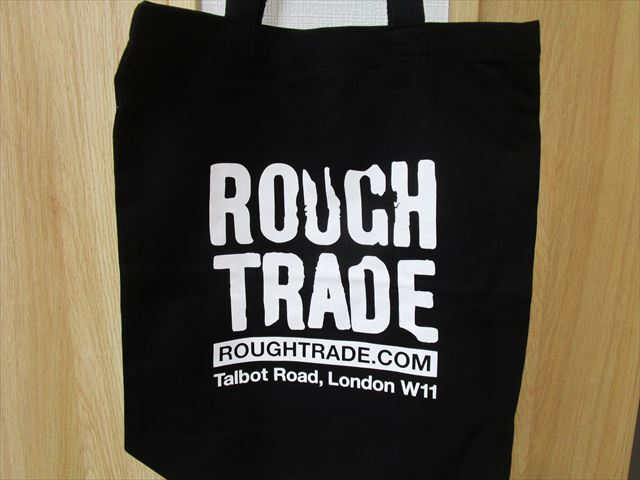 > ★新品未使用★ラフトレード トートバッグ(エコバッグ)Rough Trade Records(黒)ロンドンノッティグヒル店(両面同一柄)インド製 LO32
