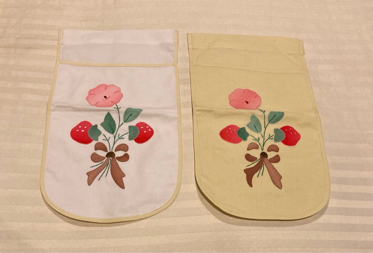- 未使用★リネンウォールポケット 壁掛け 吊り下げ収納 インテリア 収納 アップリケ 2枚セット