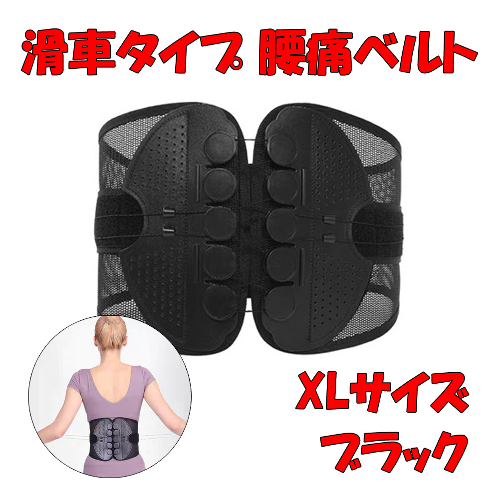 - 腰痛ベルト コルセット ダイエット 滑車タイプ 猫背矯正 腰痛 ブラック 黒 XLサイズ
