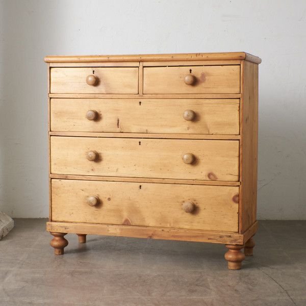 - IZ78364N★英国 アンティーク オールドパイン 無垢材 4段 チェスト 5杯 引き出し ドロワー 洋タンス ナチュラル 収納 イギリス カントリー